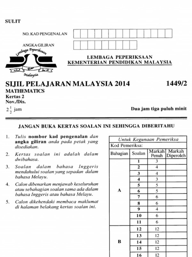 Spmsoalan Soalan Spm 2014 Matematik Kertas 2 Pdf