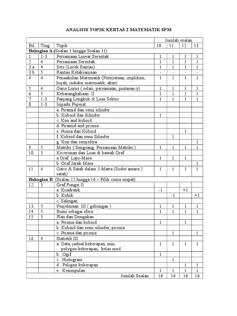 Analisis Topik Kertas 2 Matematik Spm Pdf